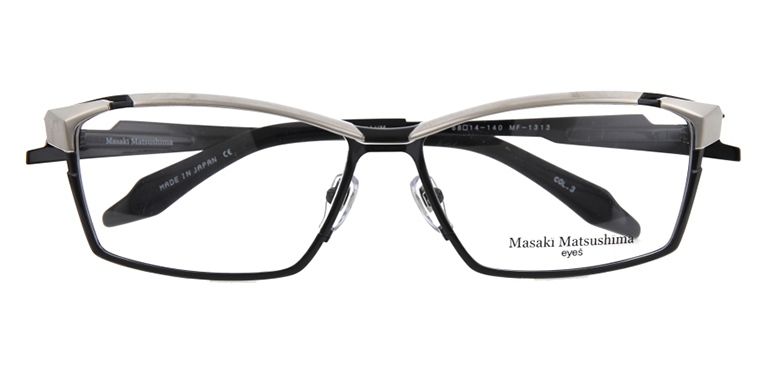 板状のフロントリムの上にのせたような立体的なブロー及びヨロイがインパクトのあるフルリムタイプ。正面、上面からのチタンプレスで一体感を出している。 ヨロイとテンプルの間に空間を設けることで、重くならないよう工夫している。3段階に段落ちさせたテンプルも特徴的で裏側にβチタンパーツを施し、柔軟性を 加味している。