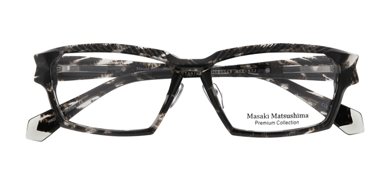 個性的なペンタゴンシェイプにフロントサイドからテンプルにかけて、大胆に面カットを施した立体的なフォルムです。ブロー部分にプレスによる蛇腹模様を入れ、アクセントとしています。テンプル芯材にはβチタンを採用し、掛けた時に顔を程よくホールドするように仕上げており、テンプルエンドには別生地を貼り合わせさりげないアクセントとしています。また、ブランドの25周年アニバーサリーの一環で、左テンプルの内側にシリアルNoを入れています。
